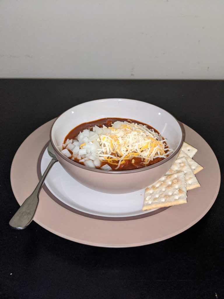 Before we get going on the cooking we have a few comments on the ingredients. The mild version of Chili seasoning is preferred over the original as the mild has a little sugar in it. This recipe uses two packets which makes it superspiced. We are using a “heat spice ladder” in this recipe for maximum flavor. The arbol chili powder is the heavy hitter when it comes to heat. If you don’t like your chilli spicy, you might back off on the quantity for your first batch. Regarding salt, we have not included any in this recipe. We enjoy serving it with oyster crackers or saltines which as you might expect have a significant amount of salt.